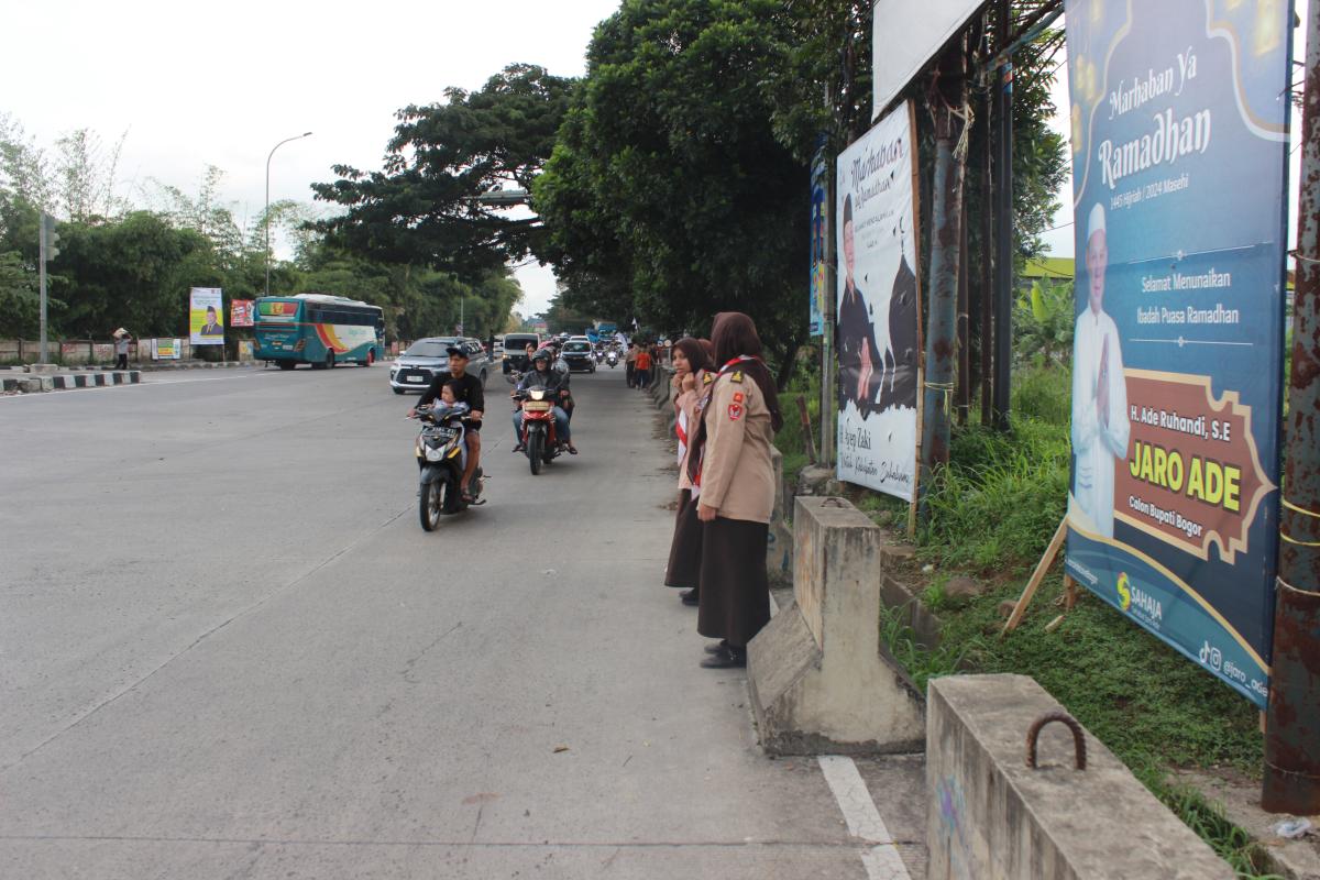 Kami mengajak 14 anggota pramuka Kwartir Ranting Cigombong untuk ikut turun membantu polisi dan satuan satuan yang terlibat agar bisa memudahkan mengatur lalu lintas