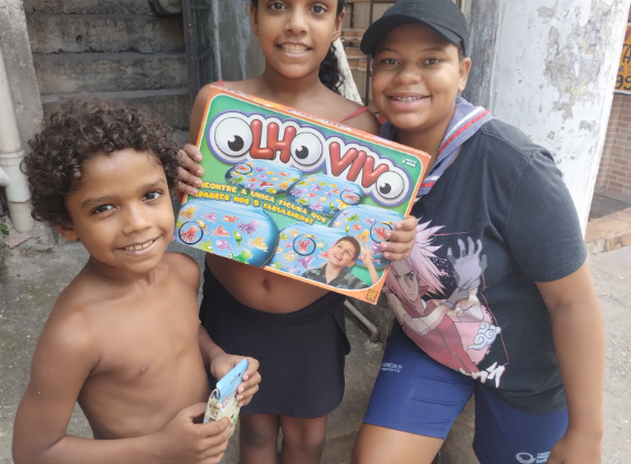 A Fabrízia me inspirou, e também o fato de ouvir pessoas dizendo que eu não ia conseguir. Além disso, eu via outras crianças que não tinham brinquedos, e isso me motivou a criar este projeto.
