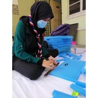 Kami telah sepakat untuk menjadikan rumah pemimpin kami sebagai pusat penghasilan utama perisai muka ini. 10 orang pengakap kelana menjalankan operasi di rumah mereka masing-masing manakala 10 orang lagi di pusat penghasilan utama. Namun, proses penghasilan di pusat penghasilan utama hanya dijalankan oleh 5 orang pada setiap sesi iaitu sesi pagi dan sesi petang. Hal ini demikian kerana kami harus mematuhi Perintah Kawalan Pergerakan yang telah diarahkan oleh kerajaan untuk membendung penularan wabak ini. Bukan itu sahaja, kami juga perlu mematuhi SOP yang telah dikeluarkan oleh Kementerian Kesihatan Malaysia iaitu jaga penjarakan sosial, basuh tangan dengan bersih sebelum memulakan kerja, pakai topeng muka dan sebagainya.