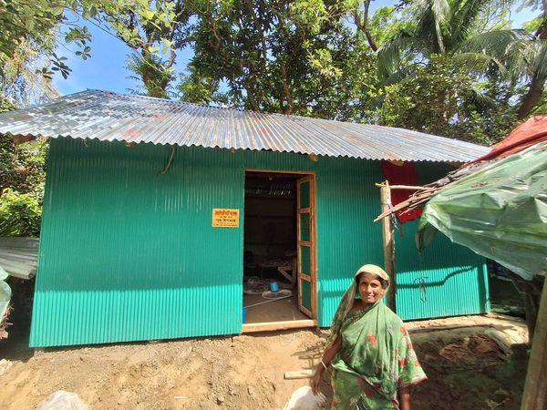 আমরা উপহার সামগ্রী নিয়ে এসে, সার্ভে করার পরে তাঁর বাড়িটি দেখে পুনর্নির্মাণের উদ্যোগ নিয়েছি। বাজার থেকে ঘরের মাপ অনুযায়ী সকল জিনিস ক্রয় করে , ঘর করার মিস্ত্রি দিয়ে আমরা এই কাজ সম্পূর্ণ করি । সেই সাথে বন্যায় ক্ষতিগ্রস্ত ল্যাট্রিনটিও ঠিক করা হবে। ঘরটির কাঠামো দাঁড় করানো হয়েছে এবং টিন লাগানোর কাজ শেষ পর্যায়ে ঘর করার মিস্ত্রীর মাধ্যমে ৷