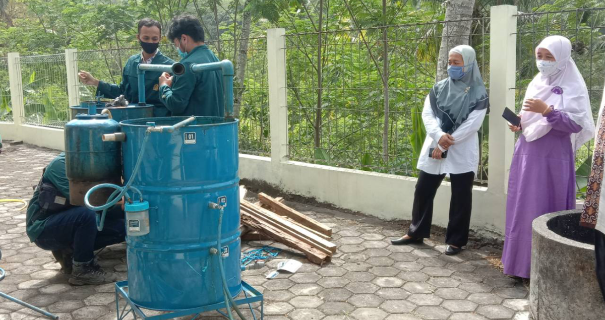 Kami merancang alat pirolisis untuk mengubah sampah plastik menjadi minyak mentah. Proses perancangan dan pembuatan di Bandung, tempat kampus kami. Kemudian diantar ke Kalurahan Hargotirto, Kokap, Kulonprogo, DIY. Sampah plastik dimasukan ke dalam tabung besi lalu dibakar dengan api besar. Hasil pembakaran ini akan menghasilkan minyak mentah yang menjadi sumber pembakaran selanjutnya.