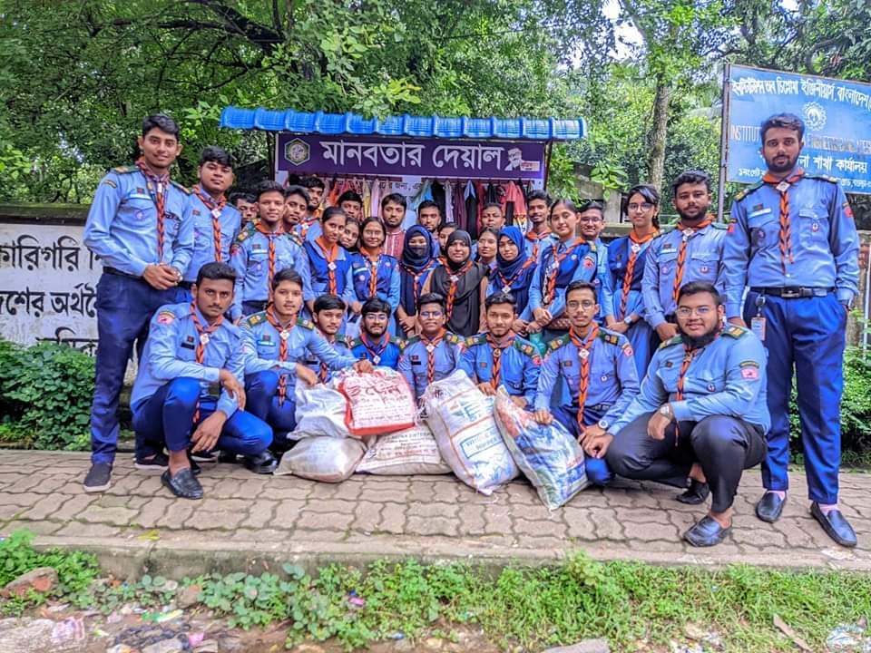 Members of Bogura Polytechnic Institute rover Scout Group initiated the create a "Humanity wall" programme on 10/11/2023 to 11/11/22023 at Colony , Bogura sadar, Bogura,12:30 pm in which 35 scouts participated actively. We collected some cloths and some things to implement this programme.