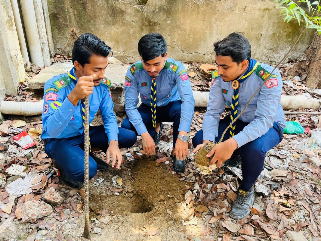 To implement this project we 3 rover scouts selected a vacant lot in our college and planted some trees there.