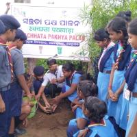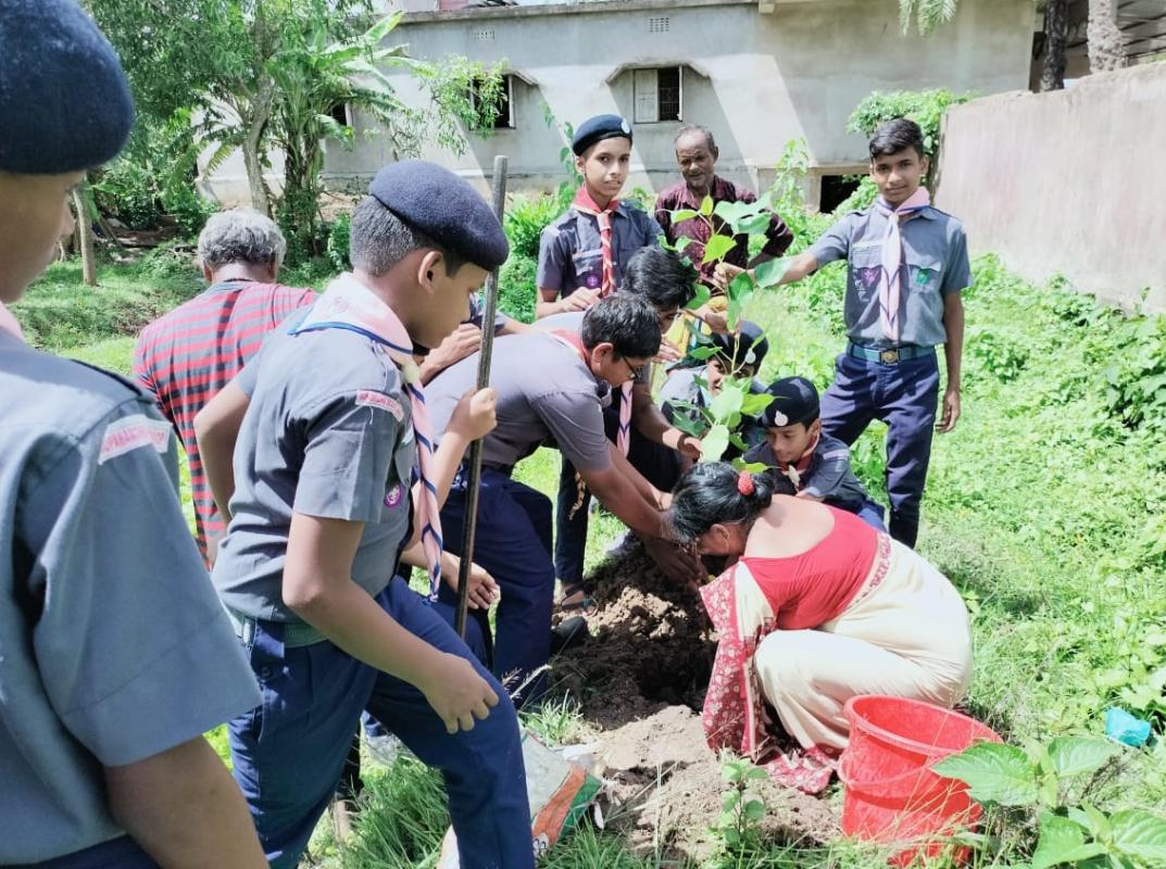 THE SCOUTS WERE INSPIRED TO PLANT TREES FOR A HEALTHY WORLD. WE HAD A SLOGAN EACH ONE PLANT ONE WHICH WAS HIGHLY APPRECIATED BY LOCAL AUTHORITIES AND THE PRINCIPAL OF THE SCHOOL.