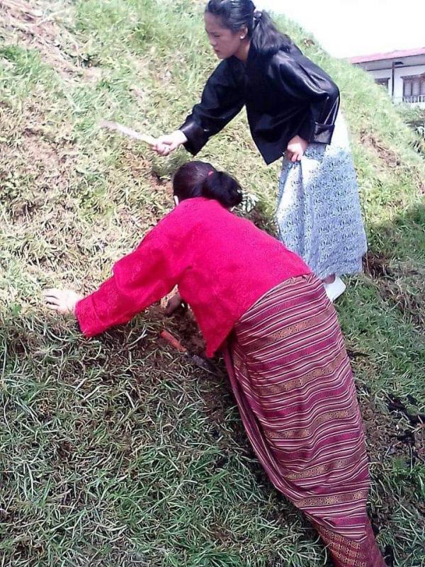 we took the plant each and went to dig holes in the barren areas near the campus.