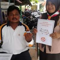 Where our Reading Volunteer Scouts run a reading rally with special theme about the harm of smoking, then if they found a smoker who willing to listen and admitted wanting to quit smoking, they tie blue ribbon to their 2 fingers.