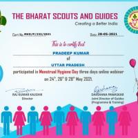 Participated online in Menstrual Hygiene Day in which Joint Director Darshana Power Kar Mam and other foreign guests also joined us successfully and after that we got certificate of talent.