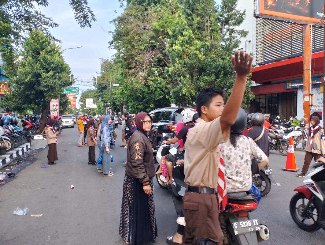 Pramuka Bantu Atur Lalu Lintas Jelang Lebaran