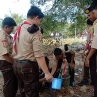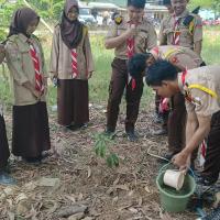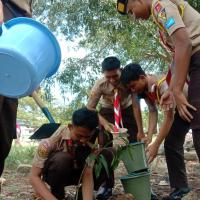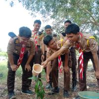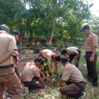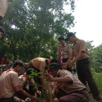 Panasnya tempat terbuka publik sehingga masyarakat yang ingin berakhir pekan merasa panas dan gersang. anggota saka wira kartika kodim 0604 karawang melaksanakan giat penanaman pohon di area terbuka publik.