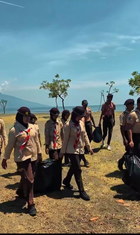 karena masih banyak yang membuang sampah di aliran air, yang membuat air itu tercemar, sehingga kualitas air menjadi buruk, ekosistem air menjadi terganggu, dan bisa menjadi sumber penyakit, jadi pramuka pangandaran, berinisiatif membersihkan sampah di pesisir pantai