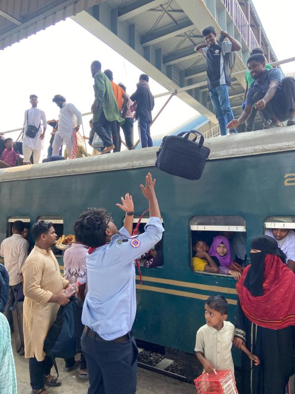 I started announcing at train stations using loudspeakers, warning passengers about the dangers of traveling on the roof and engine. I encouraged everyone to travel safely inside the train. With the help of the railway authorities, we made sure the rules and safety guidelines were communicated clearly to everyone.