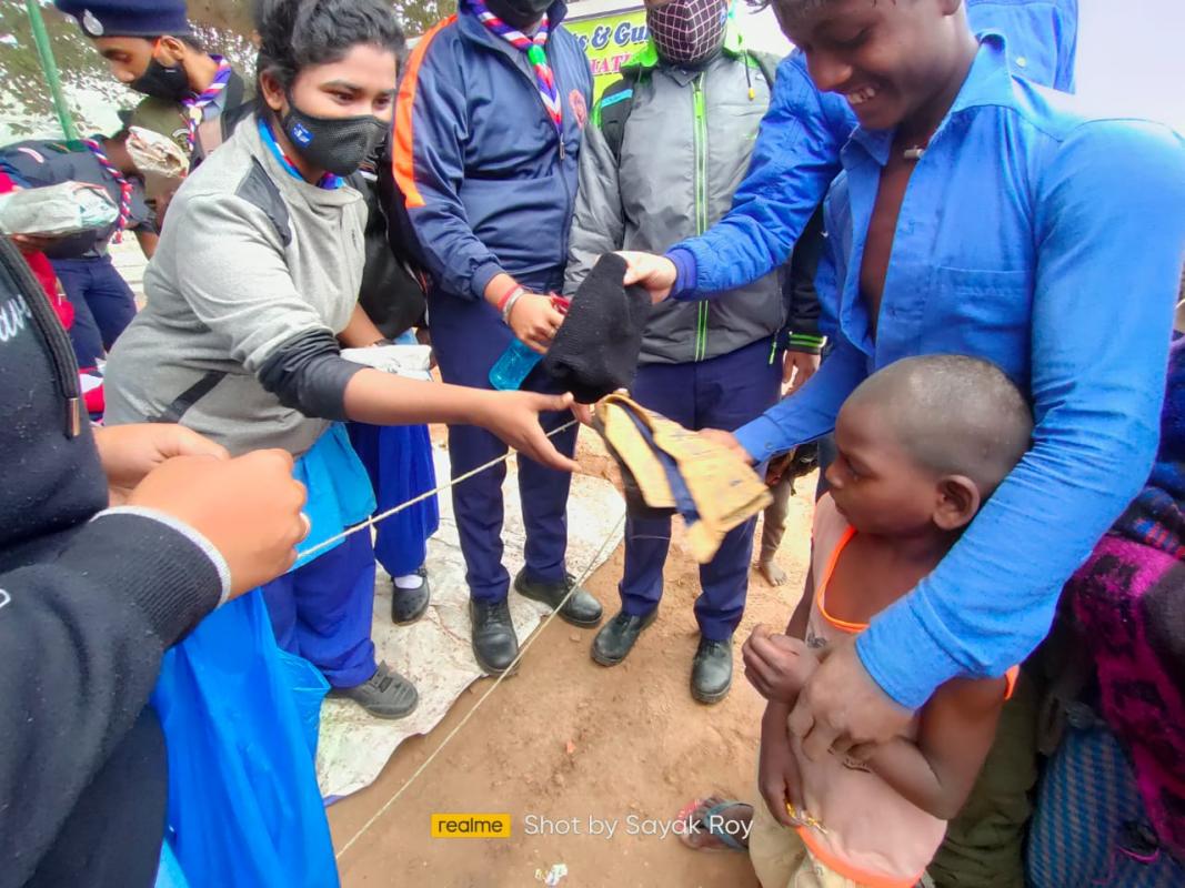On 23rd January 2022, to commemorate the 125th birth anniversary of the legendary hero of India, Netaji Subhas Chandra Bose, South Group of Kanchrapara District Association of Eastern Railway Bharat Scouts and Guides organized a Project called "Aboron" - Helping Hands in the Itbhata area of Halisahar locality to stand beside the needy people in distribution of clothes. More than 300 clothes were distributed to 100 needy people.