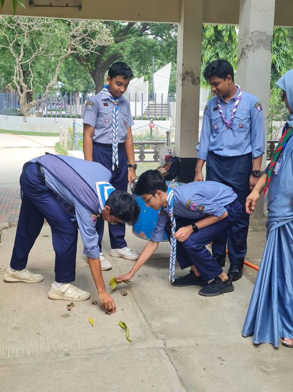 To execute this project, first of all, our scouts made a team, we went to different places to clean our school. We first gave instructions to all scouts, how to clean everything and where to throw waste. Then we started our mission Clean Earth!