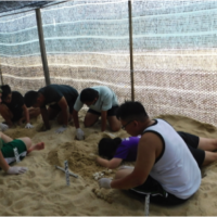 At the hatchery, nest excavations are done to ensure that all hatched eggs are accounted for (by counting the eggshells) and unhatched eggs are then cracked open to determine the cause e.g. virus, eaten by crab, etc. This data helps WWF monitor the situation and environment.