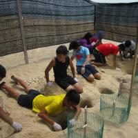 Usually carried out 1-2 weeks after the eggs have begun to hatch. Digging about 1 meters deep into the nest, we will find the remaining of the eggs.