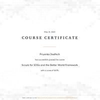 मैंने SDG hub का अन्वेषण किया था और सतत विकास लक्ष्यों पर सफलतापूर्वक ई-लर्निंग कोर्स पूरा किया। इस कोर्स में sdg के लिए स्काउट्स और बेहतर विश्व फ्रेमवर्क में मुझे संयुक्त राष्ट्र सतत विकास लक्ष्यों (SDG) से संबंधित अधिक ज्ञान प्राप्त होता है।