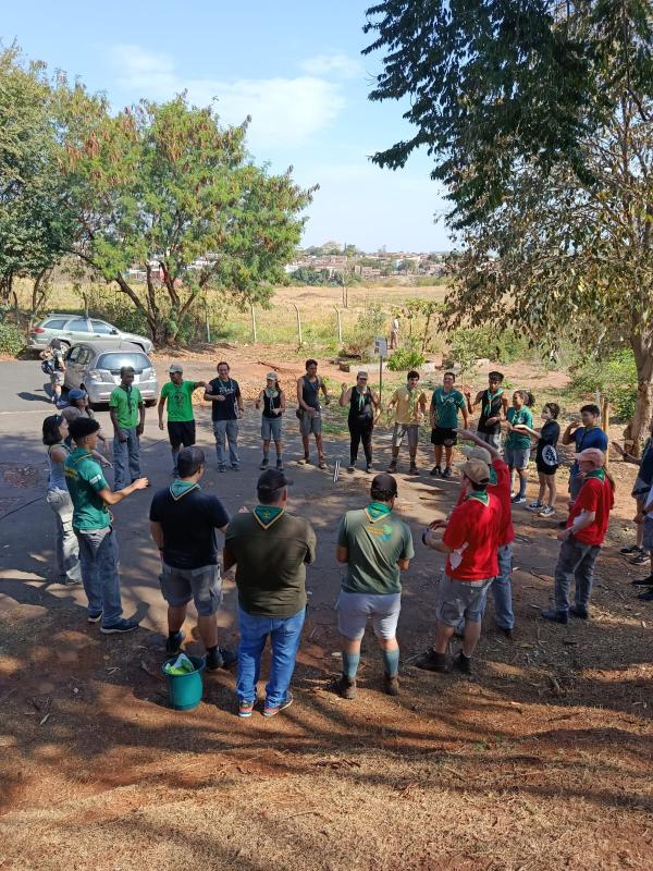 A atividade será organizada em etapas, com equipes responsáveis pela escavação, preparo do solo, plantio, irrigação e fixação da muda, seguindo procedimentos técnicos adequados para garantir o desenvolvimento da planta.