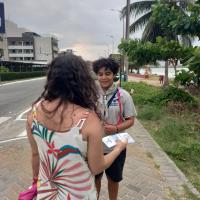 Fiz panfletos e sai entregando para as pessoas, também falava um pouco com elas e, obviamente, catava lixo.