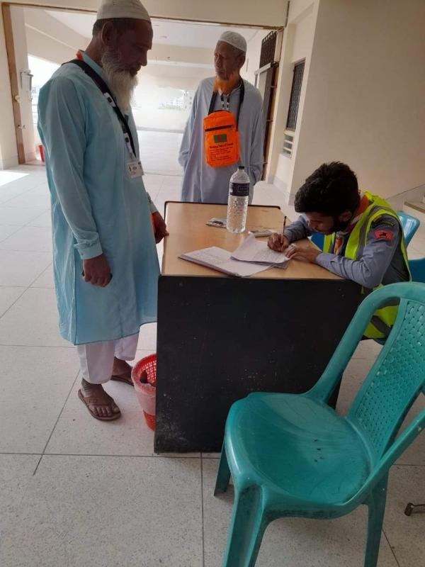 My project was implemented at Ashkona Haj Camp at Dhaka Airport. The project will assist pilgrims in 7 shifts from 24th May to 28th May. Each shift lasts six hours. In 1 of the 7 shifts I was on duty at the main gate and our main job was to verify the identity of pilgrims entering the Haj camp. And for the remaining four shifts, I saved the contact information of every pilgrim who entered the dormitory and performed their duties in the database.