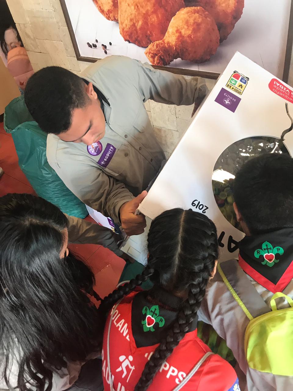 El proyecto Tapaton consistía en retirar semanalmente las tapas de botellas plásticas depositadas en ánforas distribuidas en varios locales de una cadena de comida rápida en Guayaquil, Ecuador; así como también de otras ubicadas en otras localidades de entidades amigas que se unieron al proyecto. En los retiros, la comunidad de Caminantes del Grupo #5 Roland Philipps de Guayaquil se encontraba en el lugar para manualmente descargar las tapas, pesarlas y enviarlas en fundas al centro de acopio designado, generando kilos y kilos semanales para la causa. Al final del proyecto, las tapas serán vendidas y los fondos dirigidos a la Fundación FASAN que se encarga de dar apoyo en salud y asistencia a niños con capacidades especiales. Ha sido una experiencia enriquecedora que me permite tener otra visión del mundo más allá de mi hogar y actividades cotidianas. Trabajamos para dar algo necesario a personas en situaciones delicadas.