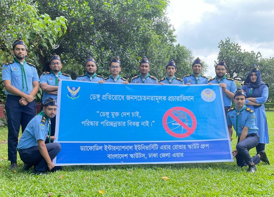Before the end of the corona epidemic, Bangladesh is facing another epidemic. At present, "Dengue" has become a terrible epidemic in the entire country including Dhaka. The number of dengue patients is increasing day by day. Last September 12, Daffodil International University Air Rover Scout Group members conducted a "Dengue Prevention Public Awareness Campaign" to sensitize the public about dengue.