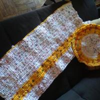 Para construir o puff sustentável, coletamos 14 garrafas PET de 2 litros e aproximadamente 100 sacolinhas plásticas. Dividimos o processo em duas etapas: a base e a capa. Para a base, cortamos as garrafas ao meio e as encaixamos, fixando-as com fita larga. Para a capa, recortamos as sacolas em tiras de aproximadamente 1 cm de largura e comprimento que atravessavam a sacola. Com essas tiras, criamos fios duplos e utilizamos a técnica de crochê para confeccionar a cobertura do puff.