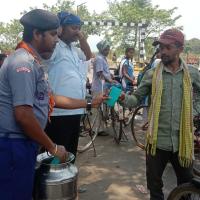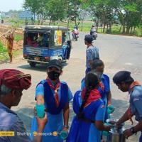 The center started on 10th of May with the cooperation of the Railway department. All the concerned Rovers & Rangers were jealous enough and distributed the work among themselves. As per their application, the state headquarters has granted some financial help. They also approached the local counselor for more assistance and succeeded also. Daily around 10 Rover Rangers distribute cool water mixed with curd, salt, mint etc. It was really a great help to quench the thirst of the needy people.