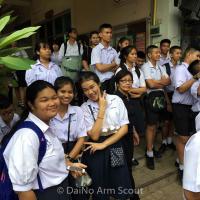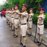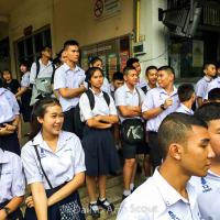 คณะผู้บริหาร ครู เจ้าหน้า นักเรียน และกองเกียรติยศ ลูกเสือกองพิเศษโรงเรียนวัดราชาธิวาส รับเสด็จเจ้าฟ้าหญิงจุฬาภรณ์ สยามบรมราชกุมารีเสด็จแทนพระองค์ ทอดผ้าพระกฐินพระราชทาน วัดราชาธิวาสราชวรวิหาร ด้วยสำนึกในพระมหากรุณาธิคุณ