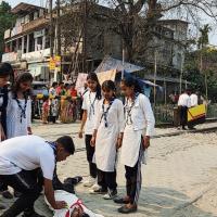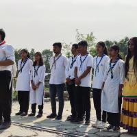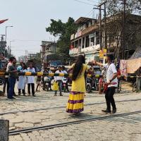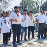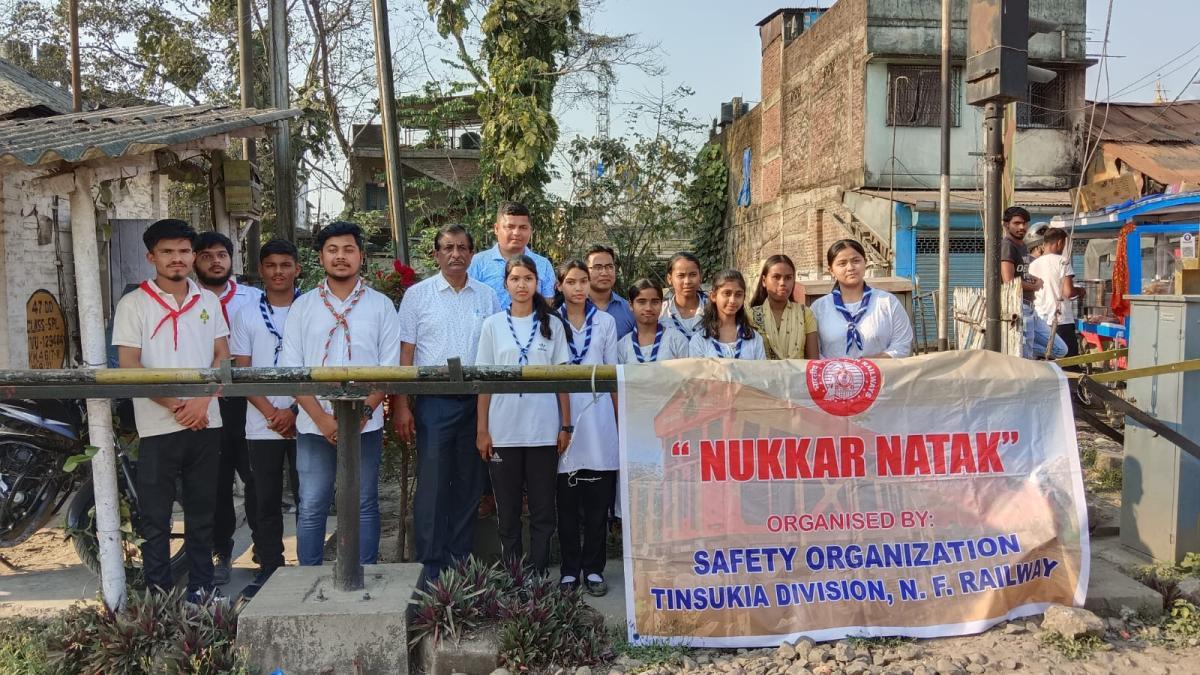 First of all we the members of Bharat Scouts and Guides, N. F. Railway, Tinsukia District discussed with the officials of Railway Safety Organization of N. F. Railway, Tinsukia Division and decided to conduct a awareness programme at different Level Crossing Gates around the division by performing Nukkad Natak and Spot Counciling to aware the public to obey the rules and guidelines issued by Indian Railways for the safety of the public. Then we prepared a script and practiced the Nukkad Natak.