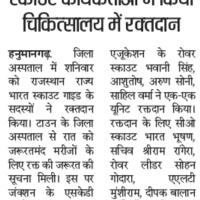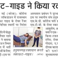लोक डाउन में जरूरतमंद लोगों के लिए रक्त की पूर्ति के लिए स्काउट ,गाइड,रोवर और रेजर को रक्तदान करने के लिए बताया