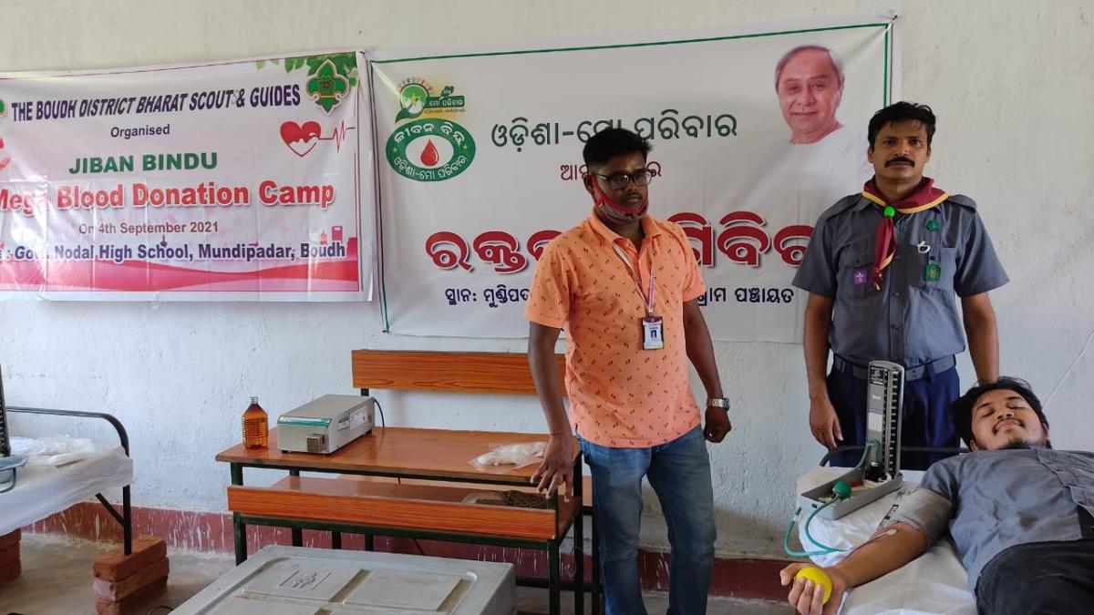 Keeping the necessity of blood in view , A mega blood donation camp was organised at. Boudh by Odisha state Bharat Scouts & guides in collaboration with "Jeevan Bindoo" on 04th September of 2021. The camp was organised in the premises of Govt. Nodal High School, Mundipadar, Boudh.