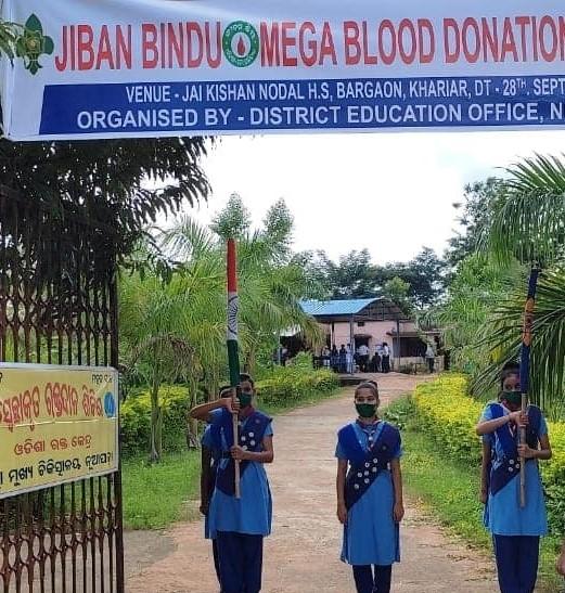 Keeping the necessity of blood in view , A mega blood donation camp was organised at. Nuapada by Odisha state Bharat Scouts & guides in collaboration with "Jeevan Bindoo" on 28th of September 2021. The camp was organised in the premises of Jai Kishan Nodal High School, Bargaon, Khariar, Nuapada