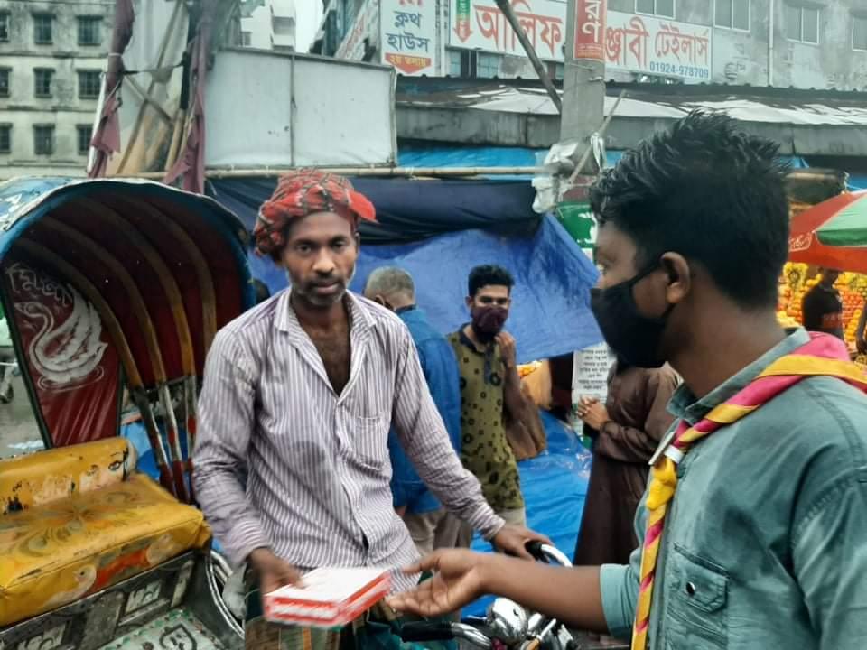 Different types of foods were packed and distributed among the poor people. This project was executed in Manda-Mugda-Basabo.