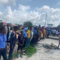 les jeunes rassemblés à la côte sauvage de la raffenerie, apres avoir remis les kits aux jeunes, ils ont été divisé en groupe.