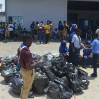 nous avons ramassé les dechets plastiques, mis dans des poubelles puis verser dans un camion