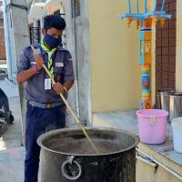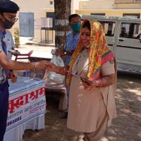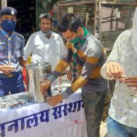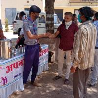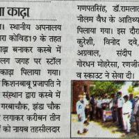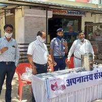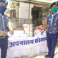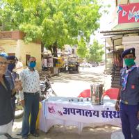 सोशल डिस्टन्सिंग की पालना करते हुए रोगप्रतिरोधक क्षमता बढ़ाने के लिए रोवर स्काउट पिला रहे आयुर्वेदिक काढ़ा जिसमें अपनालय संस्थान का सहयोग रहा । जिसमें एक हजार लोगों को काढ़ा पिलाया गया