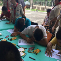 `Then, by 10:00 AM, they started their activities. Their first activity’s main goal was for them to recite the Scout Oath and law (with a guide). They recited this in unison, slowly trying to memorize what has been taught. By 10:45 AM, their next and last module was coloring the country’s Boy Scout Mascot, doing the Scout Salute. By 11:30 AM, they immediately wrapped up their day and ate their small snack break. After this, they bid their farewells and as they were getting used to it, they were sure and happy that there were more meetings to come.
