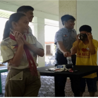 Their lesson for the day was about the Kim's Games. It was a game based merely on keen observation. The lesson proper started by 8:15 AM and was finished by 8:45 AM. It was a short lesson since the lesson was more on applying what they have learned. The teachers for the day have prepared only two activities, but the first activity will have its mechanics changed after the completion of each. The first game was to guess an item by the sense of touch. Each guide will have the Boy Scouts memorize the items on the table within the given time; when the time is up, the guides will have the Boy Scouts blindfolded. The teachers will hand the Boy Scouts an item and the Boy Scouts will guess what it is, only by feeling it. Each Boy Scout had the chance to do this game, and everyone enjoyed. They finished by 9:45 AM. Their next game was done by pairs. The teachers laid out 5 things in the table, and, they will be covered with a cloth; by the time the cloth is lifted, an item will be gone, and they will guess which is. The first one to guess which item is gone will be the winner. Everyone was happy to play games, and they finished the activity by 10:30 AM.