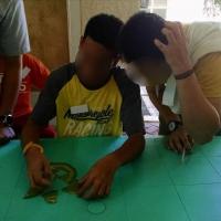 By 8:15 AM, they started their lesson proper. The lesson for the day was about the roles and responsibilities of the ranks in a Patrol or Troop. The assigned teachers for the day taught this, with simple demonstrations on what a leader and what a Boy Scout does. After this, they proceeded immediately to the activity. At 9:15 AM, their first activity was to fix a puzzle. Only two were given this task and, if they did not finish it, their fellow Boy Scouts cannot move on to the next activity. With enough teamwork, the two finished it by 9:30 AM. Their next activity was to color the signs/patches of the different roles of the Scout. They will next be assigned to troops in order to do their activities as a team. They finished by 10:30 AM.