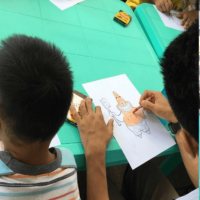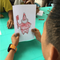 Their second and last activity was to color a famous cartoon character from Spongebob, who is, Patrick Star. He is very well-known and like in the picture, he was showing an example as he was holding a toothbrush, promoting hygiene. As they have finished, they wrote their names and their works were later displayed. They finished by 11:00 AM and by that