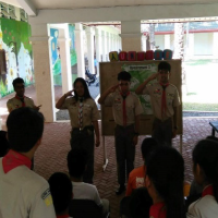 After their Opening Ceremony, the assigned Scouts to teach about their next requirement started the lesson proper at 8:15 AM. Their lesson for the day was all about how to properly execute the Scout Sign, Scout Salute and Scout Handshake. With their prepared visuals, readied lessons and proper examples, the lesson was taught properly.  Shortly after the lesson, the activities were held. The activity proper started on 8:45 AM. The first activity held was done by the assigned Scouts. The assigned Scouts demonstrated a particular action, and the children would guess if it was the Scout Salute, Scout Sign or Scout Handshake. Each were given a turn to answer, all of them being recognized.