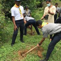 The scouts and non-scouts reached the place by train at Galaboda and walked to the project location with Arjun plants. The reason to choose this plant was it is a good plant to retain water and it also avoid soil erosion along the waterfall banks. All the participants dug pits in the location and planted plants. By the end of the day 80 Arjun plants were planted and watered. After the planting was done the scouts picked all the plants bags and cleaned the area and went home with contentment.