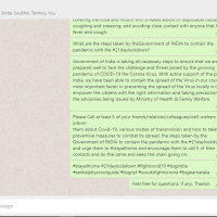 I have called more than 5 of my friends and informed them about Covid-19, various modes of transmission and how to take preventive measures to combat its spread, the steps taken by the Government of INDIA to contain the pandemic with the #21daylockdown and urged them to #stayathome and encourage them to call 5 of their contacts and do the same and keep the chain going on. To reiterate I have also whatsapp them the information and asked them only to follow authentic news published by Press Information Bureau (PIB) or MoHFW.