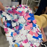 A indústria têxtil e um grande poluente, então eu e minha colega criar um projeto para tentar diminuir o desperdício de tecido. Juntamos com o problema da poluição por meio de plásticos e com o problema de abandono animal e criamos nosso projeto