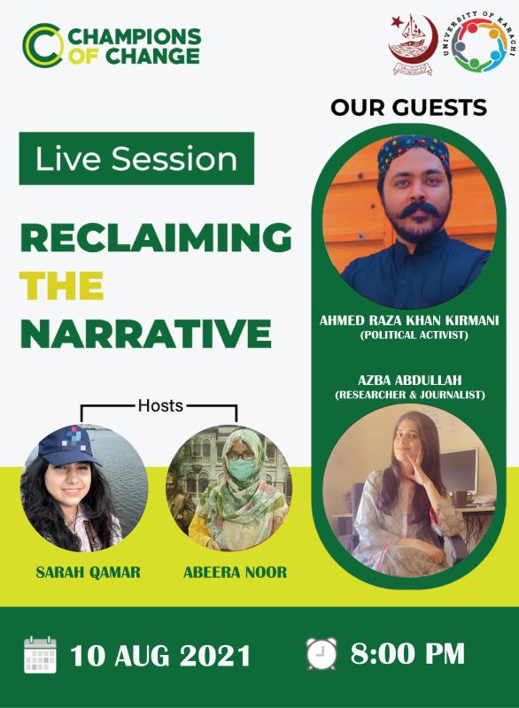 our project Reclaiming the narrative, we conduct online sessions with respected guests. one of our session's topic Reclaiming the Narrative of Peace.