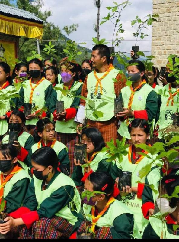 Mass plantation was carried out by 115 scouts and scout leader s at Genekha Lower secondary school in Thimphu ,Bhutan. The project was to plant 500 trees and plants in the school premises to bring back the lost forest cover during the establishment of the school. The project aims to recover the green vegetation of the school area and to provide natural environment for students and live friendly with ecosystem.