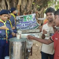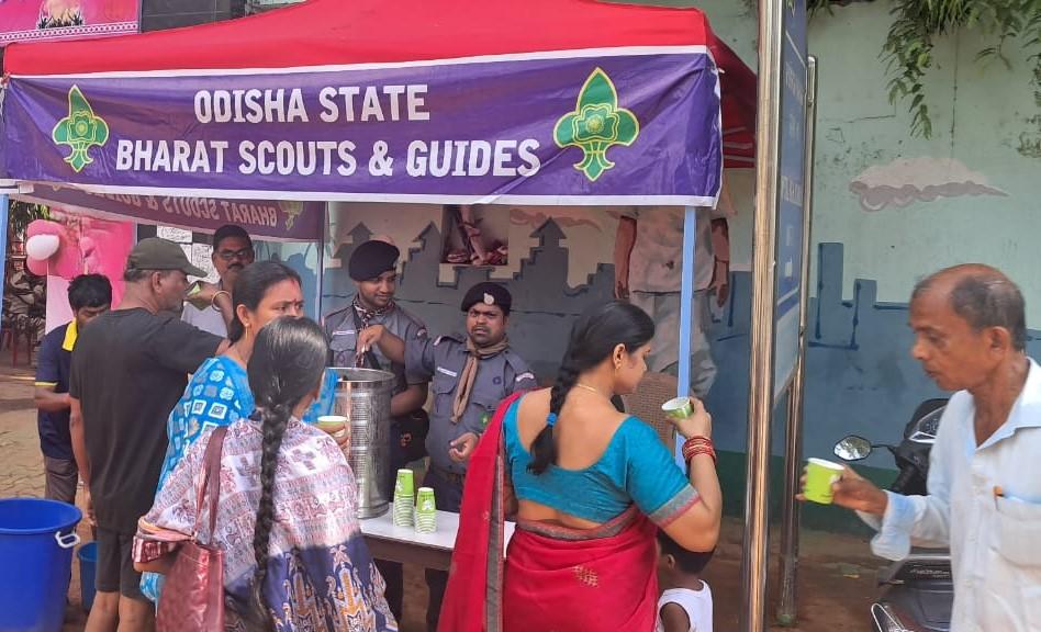 More than 50 water distribution centers have been set up around the state by Odisha State BSG. 02 to 04 Rovers/Rangers/Scouts/Guides have rendered services in these centers. Near the office gate of SHQrs a water distribution point was installed. Lemon water, curd water, cold water, buttermilk, etc. have been distributed to the passers-by. The stalls have been continuing from 10:00 AM to 03:00 PM daily. It was a great help to the thirsty people.