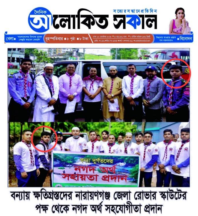 Firstly,our team of 15 members collected money,dress etc from Narayanganj in a week. We managed to gather relief and financial aid for more than 500 families. We then packed the relief and started our journey from Narayanganj to Noakhali, we reached the place at September 11 and started distributing relief to the affected families by boat. Working more than 6 hours per day we finally completed our activities at September 12