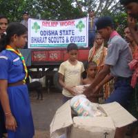 Odisha still in Grip of Flood water. So scout organisation started relief operations at Jajpur, Bhadrak, Nayagarh, Puri, Balasore, Kendrapara, Jagatsinghpur. Dry food packets, water pouch, and cooked food were provided to affected villagers. Rovers Rangers helping to prepare rafts to cross the roads. Scarcity of drinking water is the most painful truth now. So more importance was given on this part.