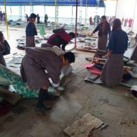 40 scouts with 8 scout leaders rendered their service for the cleanliness of the chador Lhakhang (Monastery) where his Eminence Dzongsar Jamyang Kyentse Rinpoche gave religious discourse. Scouts collected waste in and around the place during the discourse time and after the discourse is over we did sweeping of the place where His eminence, great lamas, monks and devotees sat, keeping it ready and clean for next day discourse.